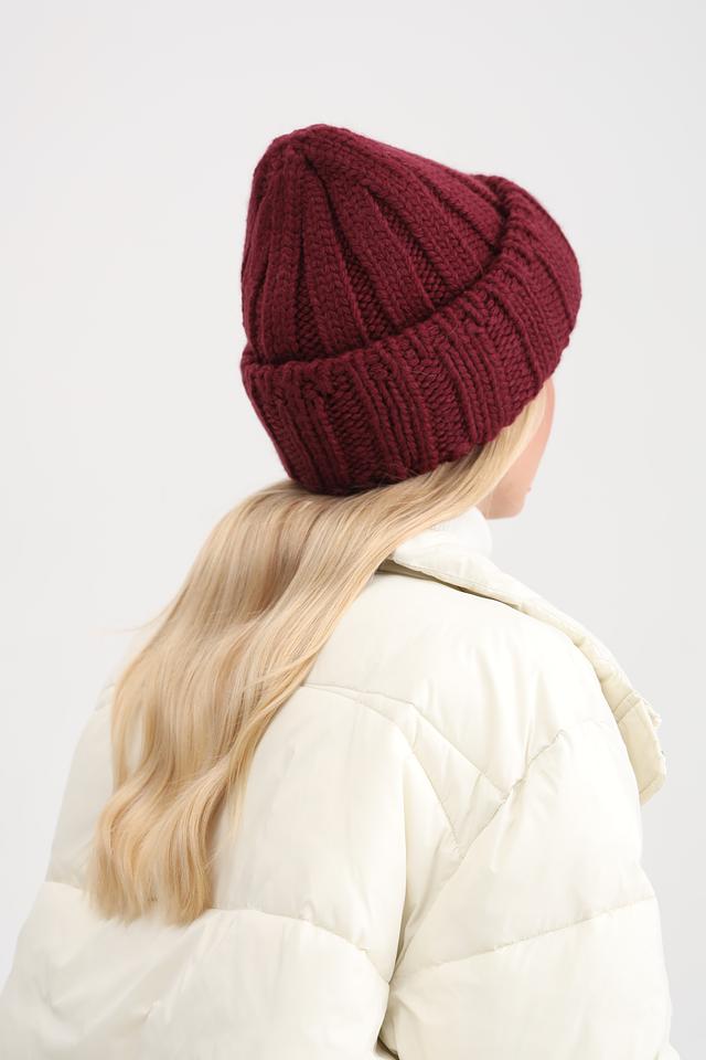 Вязаная шапка Adel бордового цвета – это стильный и теплый аксессуар для холодного времени года. Изготовлена из мягкой шерсти и акрила, обеспечивающих комфорт и удобство при носке. Идеально дополнит ваш повседневный образ. Состав: шерсть 50%, акрил 50%