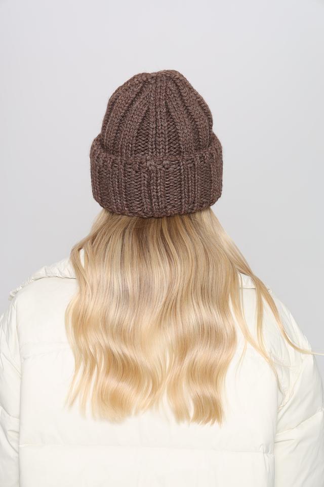 Шапка имеет классический дизайн и насыщенный коричневый цвет, который легко сочетается с различными элементами гардероба. Вязаная текстура придает шапке уютный и стильный вид.