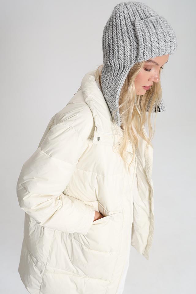 Шапка связана крупной вязкой, что придает ей объём и текстуру. Сочетание шерсти и акрила обеспечивает тепло и комфорт, а также делает шапку приятной на ощупь.