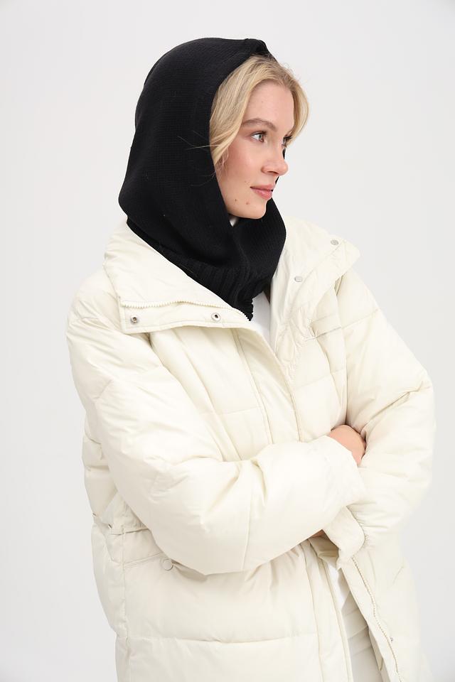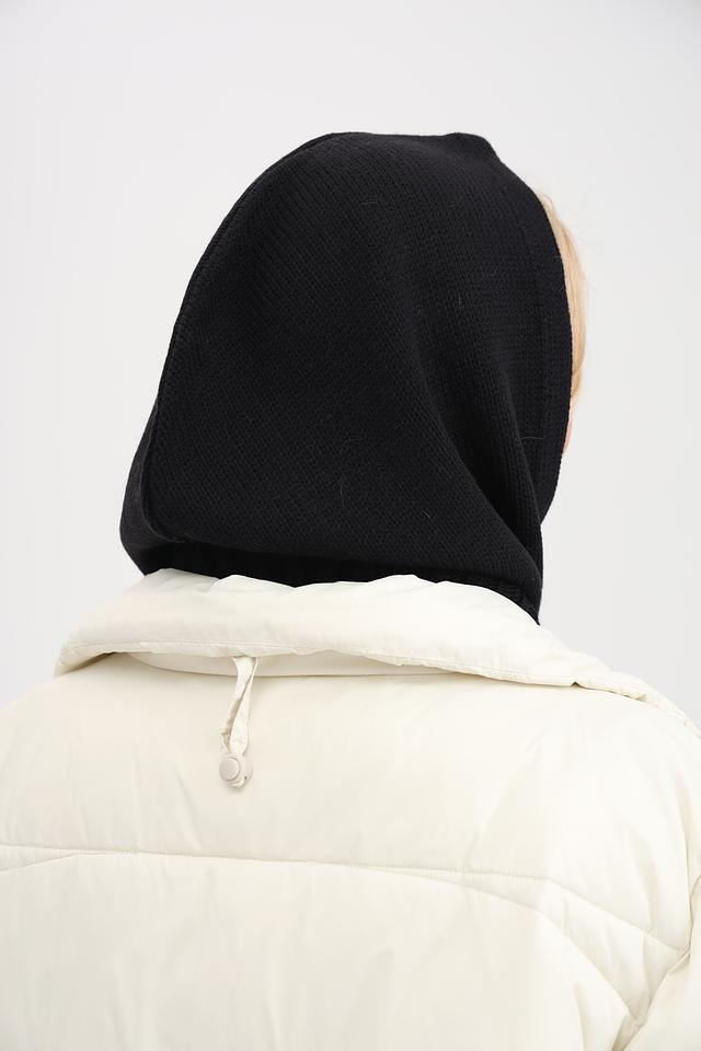 Чёрная вязаная шапка Adel – это стильный и практичный аксессуар для защиты от холода. Изготовлена из мягкой шерсти и акрила, обеспечивая комфорт и тепло в холодную погоду. Удобный крой позволяет носить шапку как капюшон. Состав: шерсть 50%, акрил 50%