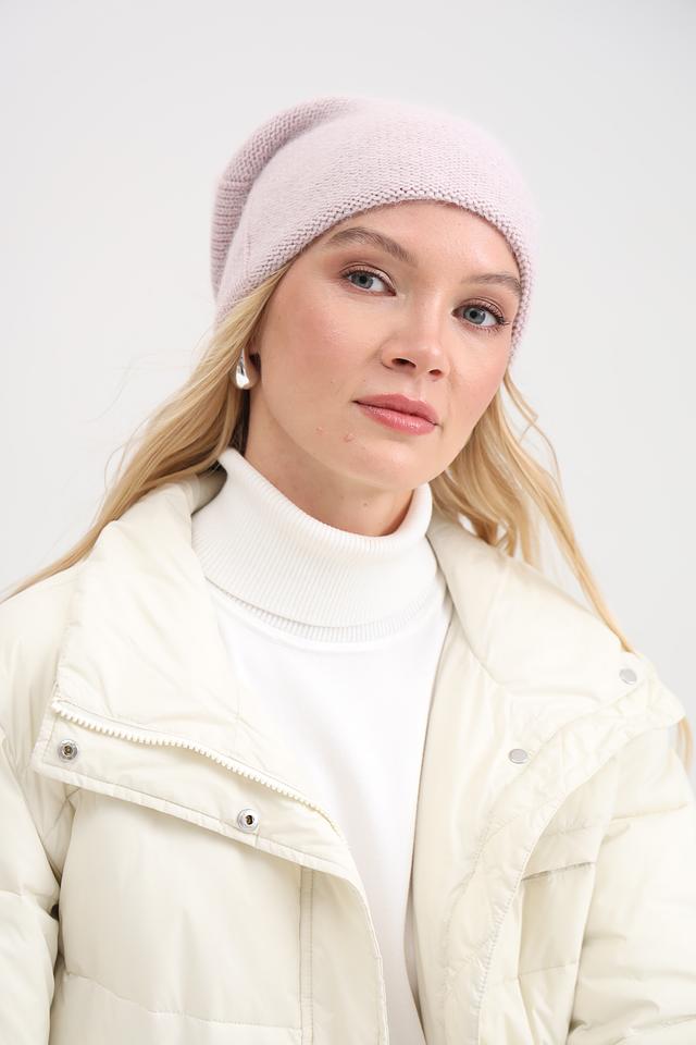 Нежно-пудровый цвет шапки легко сочетается с различными элементами гардероба, добавляя образу женственности и элегантности. Вязаная структура обеспечивает хорошую теплоизоляцию, защищая от холода в зимнее время.
