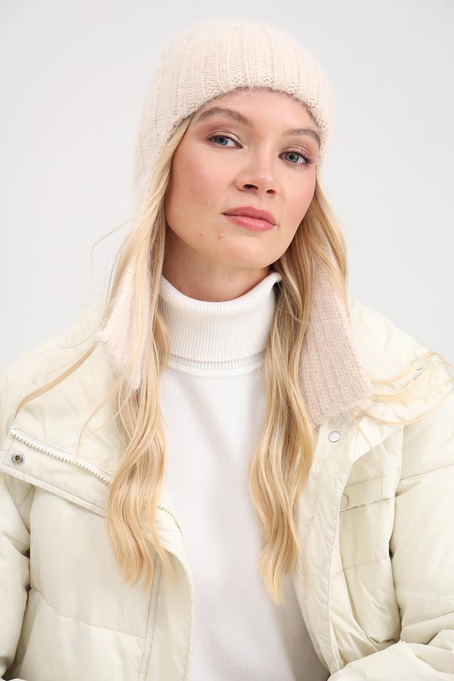 Бежевая шапка Adel с ушами – стильный и тёплый аксессуар для зимнего сезона. Изготовлена из мягкой ангоры и полиамида, обеспечивающих комфорт и долговечность. Идеально дополнит ваш образ. Состав: ангора 60%, полиамид 40%