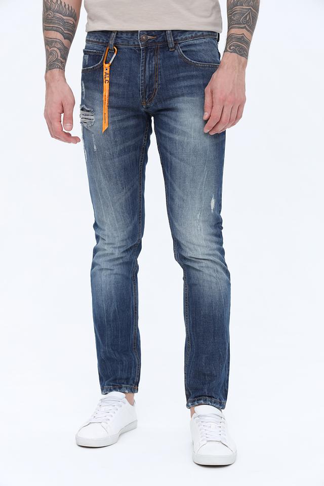 Мужские джинсы Alcott синего цвета с эффектом потертости и рваными элементами. Классический крой slim fit обеспечивает комфортную посадку, а стильный дизайн делает их отличным выбором для повседневного образа. Состав: хлопок 100%