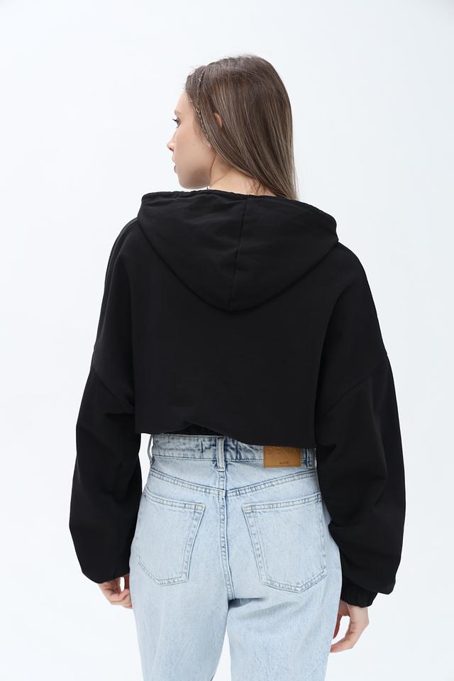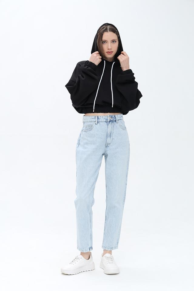 Чёрный джемпер от Alcott с капюшоном и белыми шнурками – стильная и удобная модель для повседневной носки. Укороченный крой и манжеты на рукавах придают образу современный вид. Состав: хлопок 100%