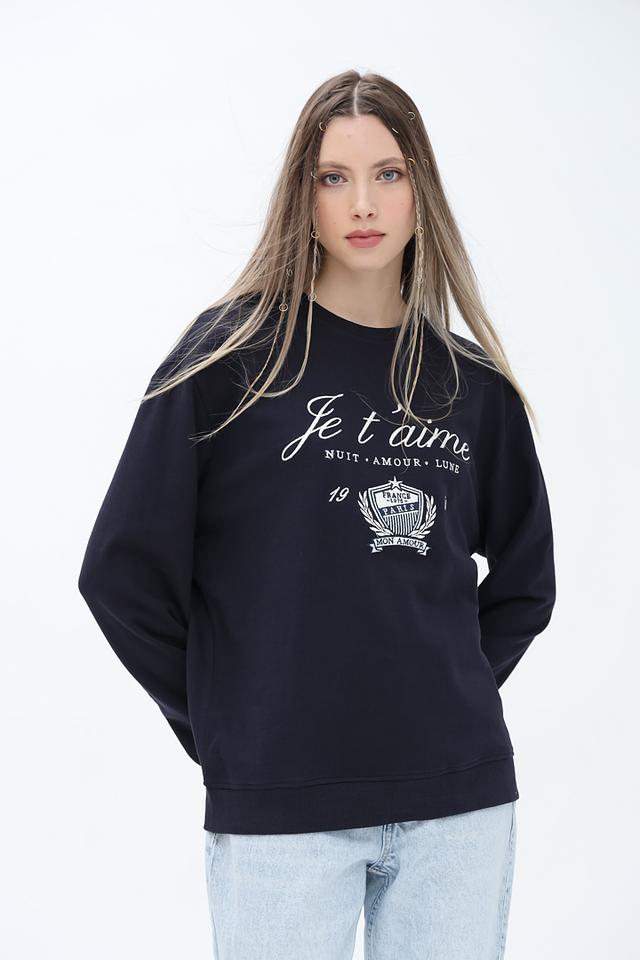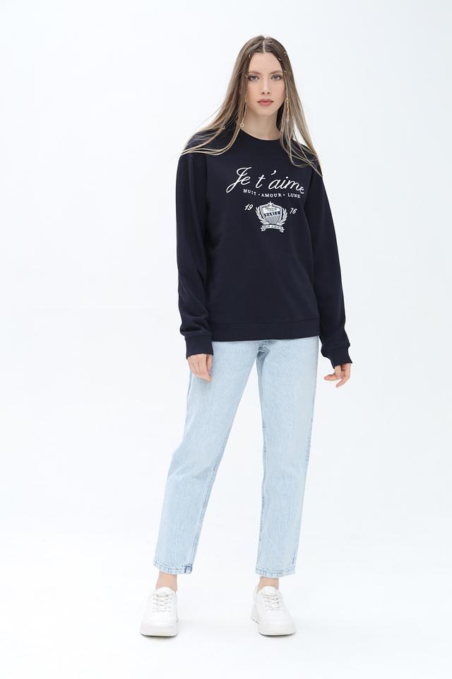 Женский джемпер Alcott тёмно-синего цвета с оригинальным принтом – стильное и комфортное решение для повседневного образа. Изготовлен из мягкого хлопка, обеспечивающего удобство в носке. Состав: хлопок 100%