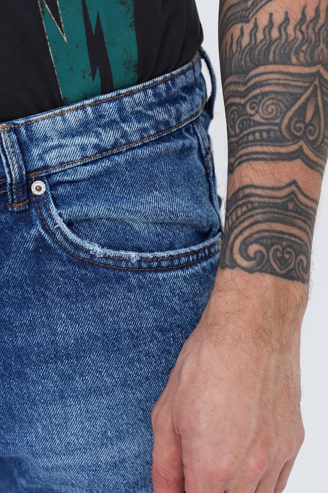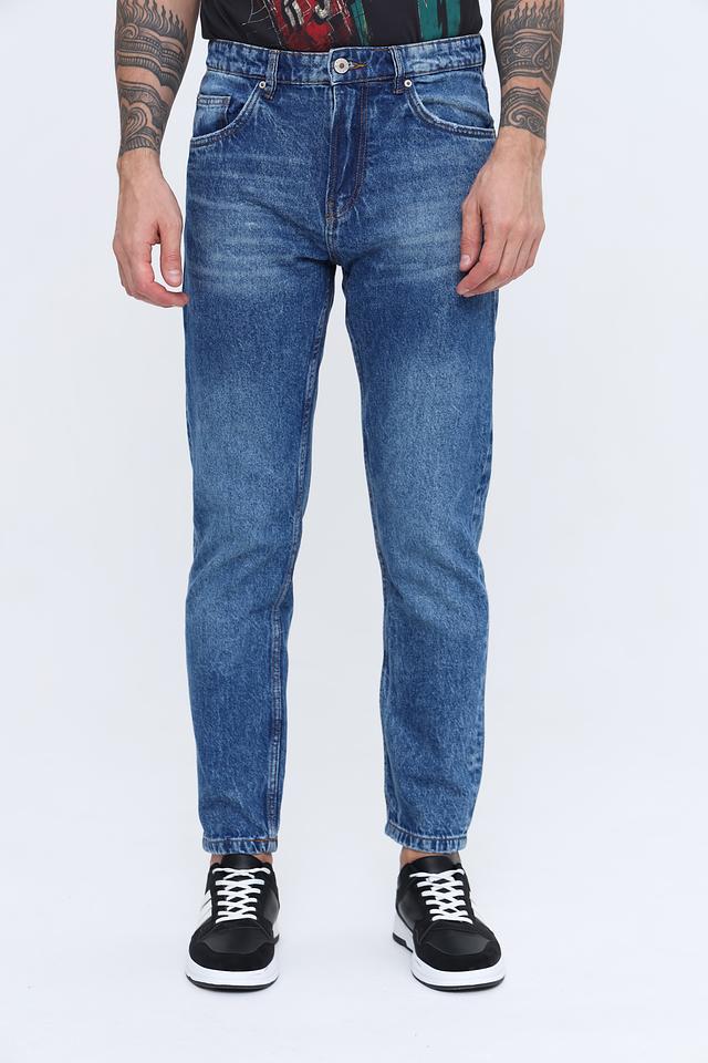 Джинсы изготовлены из 100% хлопка, что обеспечивает комфорт и воздухопроницаемость. Эффект потертости придает им стильный и современный вид. Пять карманов – два спереди, два сзади и один небольшой карман для мелочи – обеспечивают функциональность.