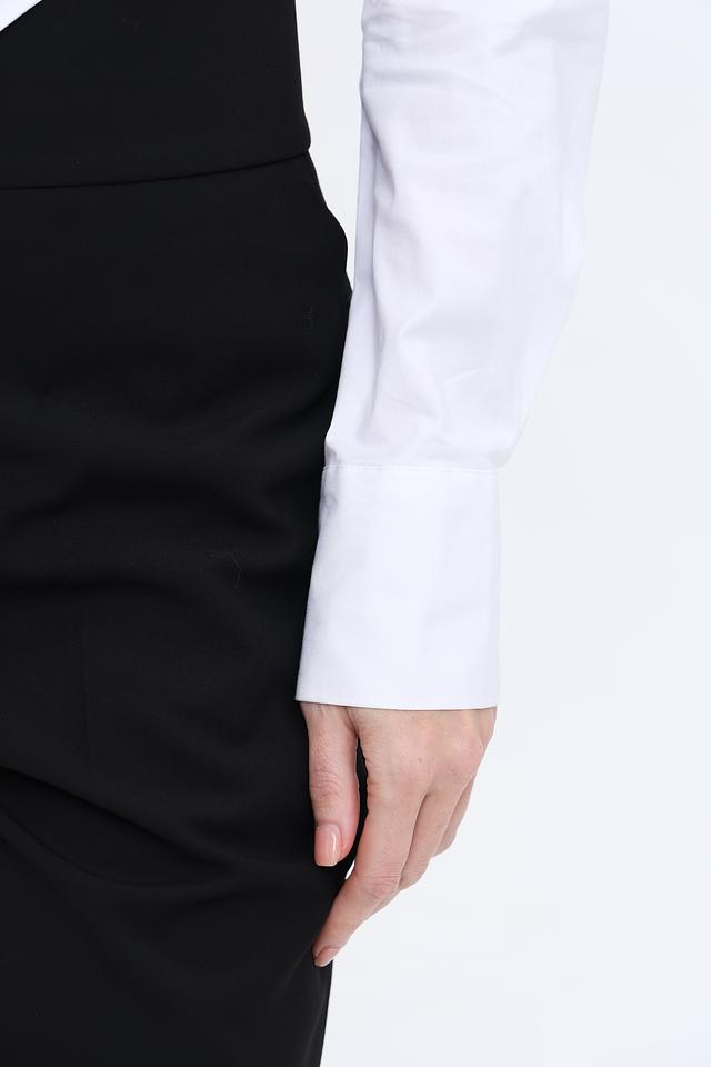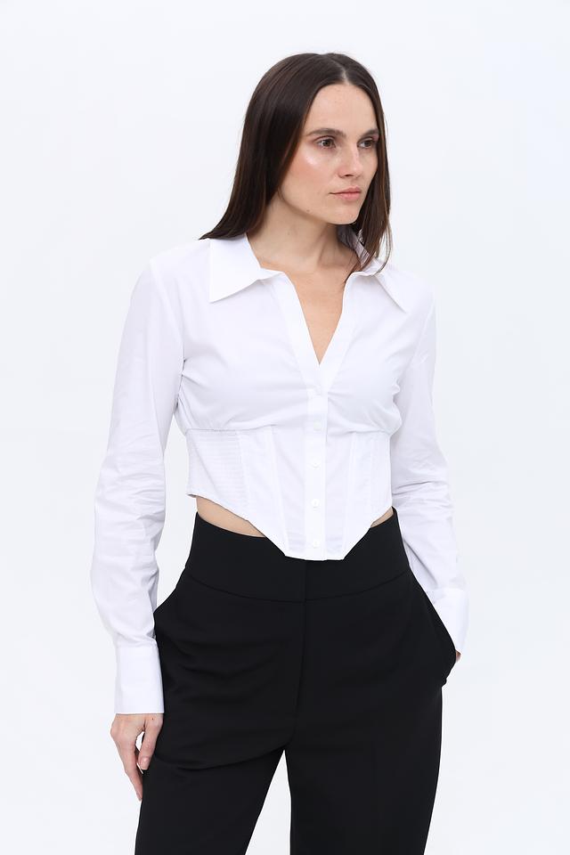 Блуза изготовлена из высококачественного хлопка с добавлением эластана (96% хлопок, 4% эластан), что обеспечивает приятные тактильные ощущения, комфорт и хорошую посадку по фигуре. Она отлично сохраняет форму и не мнется.