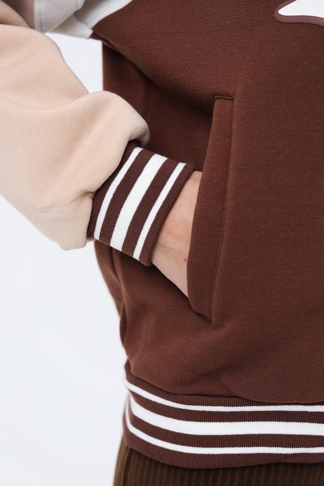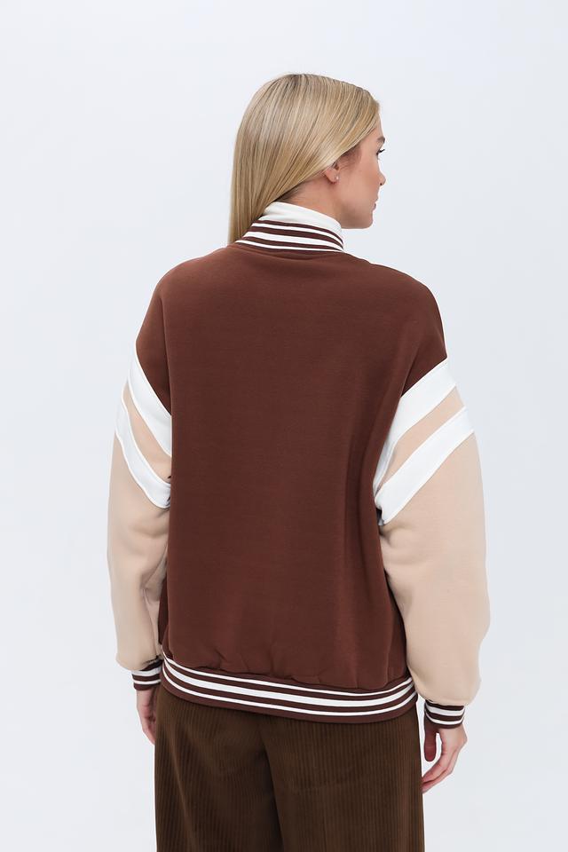 Эта женская толстовка от Alcott выполнена в стиле спортивного шика и станет отличным дополнением к вашему гардеробу. Основной цвет – насыщенный коричневый, который гармонично сочетается с бежевыми вставками на рукавах и воротнике.