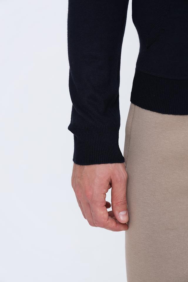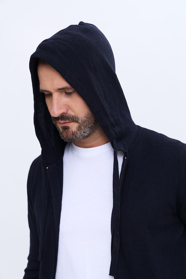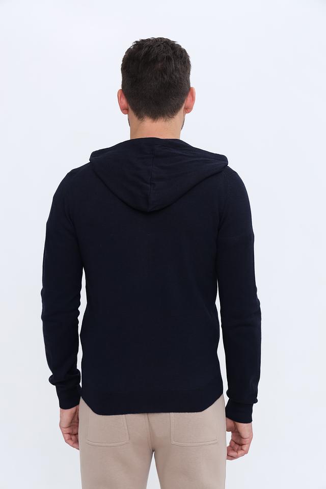 Мужской кардиган Alcott тёмно-синего цвета с застёжкой на молнии и капюшоном. Модель выполнена из мягкого акрила и полиамида, обеспечивающих комфорт и удобство в носке. Идеально подходит для создания повседневных образов. Состав: акрил 60%, полиамид 40%