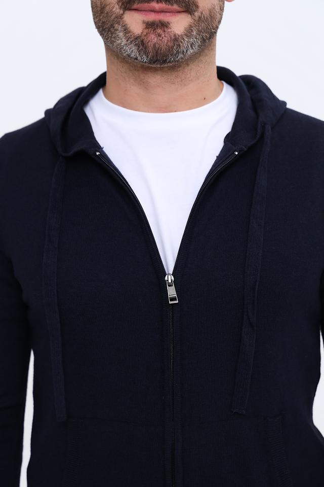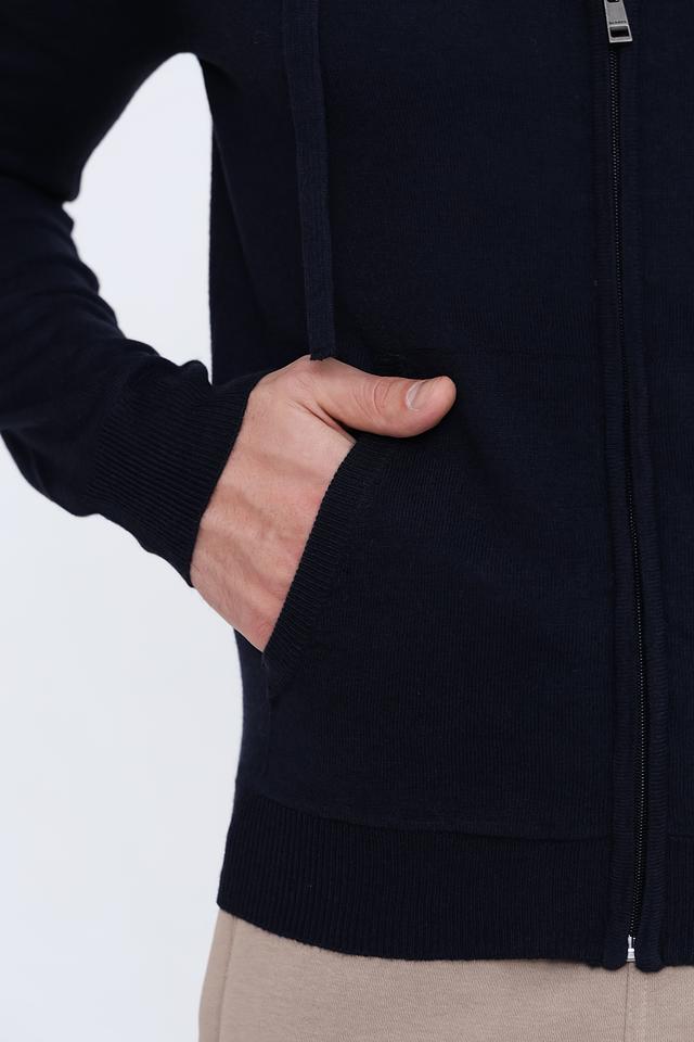 Мужской кардиган от бренда Alcott – это стильное и практичное решение для прохладной погоды. Модель выполнена в тёмно-синем цвете и имеет удобную застёжку на молнии, а также капюшон со шнурками для регулировки.