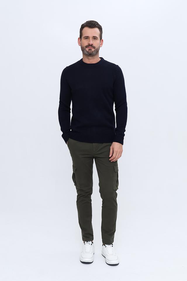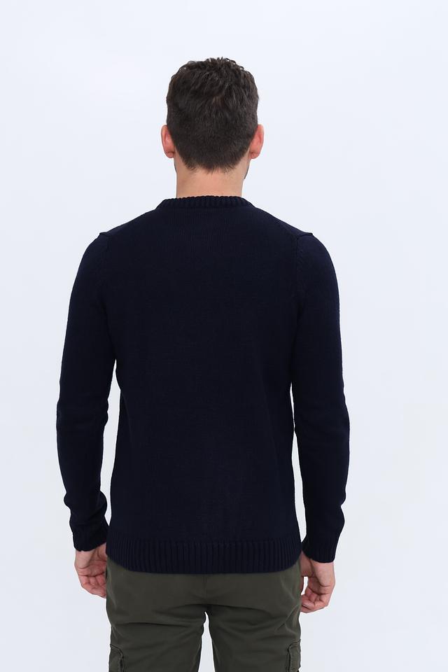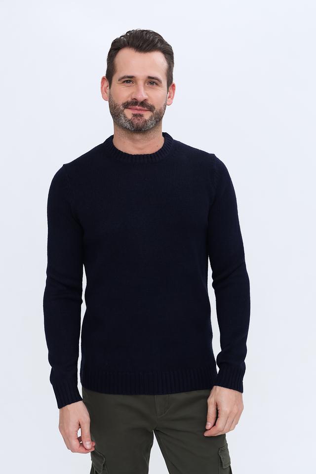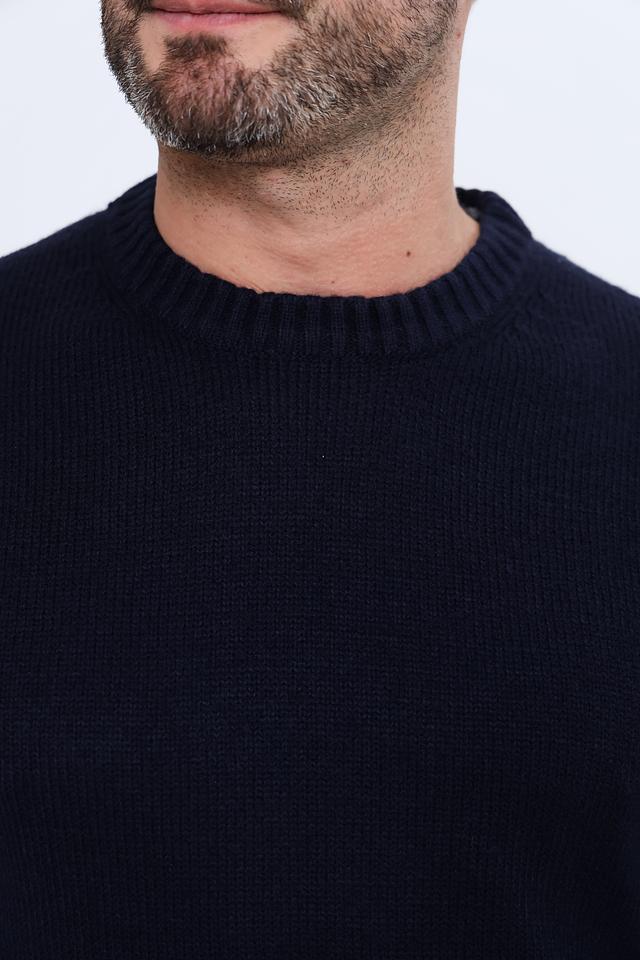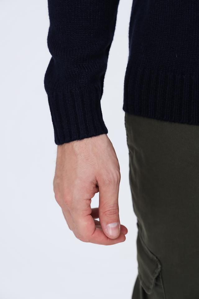 Джемпер имеет тёмно-синий цвет, который легко сочетается с различными элементами одежды. Изготовлен из 100% акрила, что обеспечивает мягкость, комфорт и простоту в уходе.
