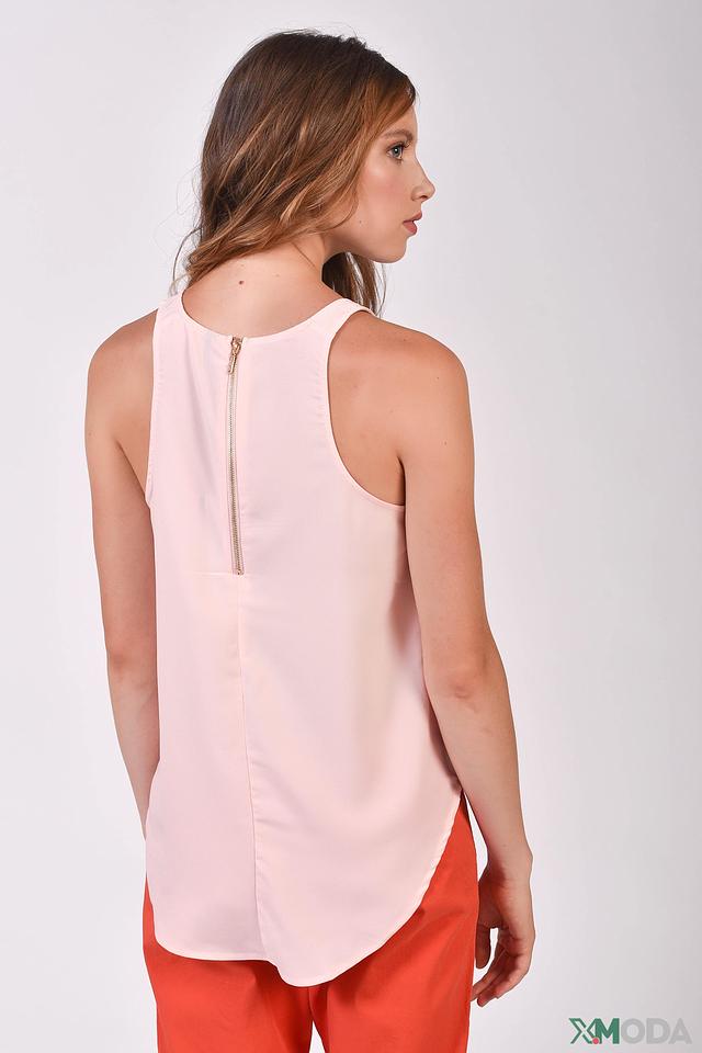 Застежка-молния на спине обеспечивает удобство надевания и позволяет регулировать посадку по фигуре. Асимметричный подол добавляет блузе оригинальности и стиля. Блуза прекрасно сочетается с брюками, юбками и шортами, позволяя создавать разнообразные образы.