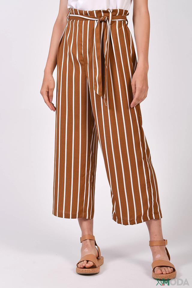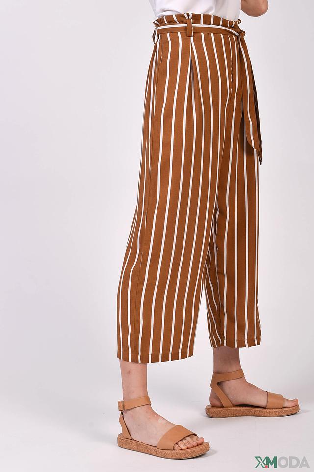 Брюки Alcott коричневого цвета с вертикальной полоской – стильное и комфортное решение для создания модных образов. Модель выполнена из 100% полиэстера, имеет завышенную талию и пояс с завязками. Состав: полиэстер 100%