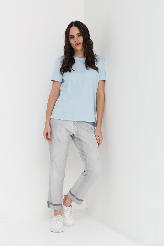 Джинсы имеют прямой крой и укороченную длину, что делает их идеальными для создания модных образов. Эффект потертостей придает им непринужденный и слегка винтажный вид. Классическая застежка на молнию и пуговицу обеспечивает надежную фиксацию. Пять карманов – два спереди, два сзади и один небольшой карман для мелочи – добавляют функциональности.