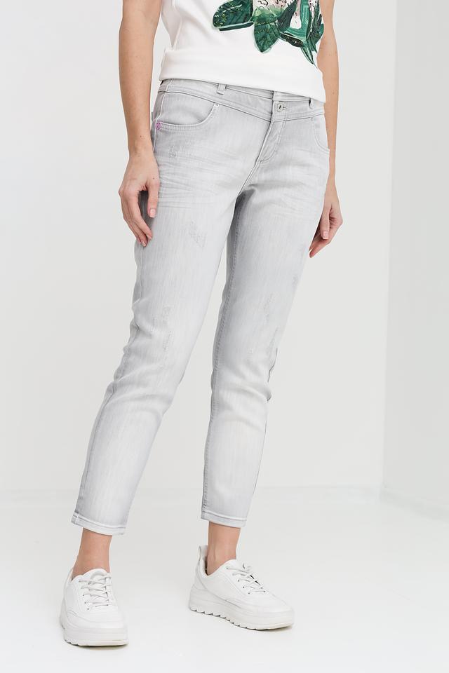 Серые джинсы Angels с эффектом потертостей – стильная и удобная модель для повседневной носки. Узкий крой и слегка укороченный силуэт делают их актуальным дополнением к любому образу. Состав: хлопок 91%, полиэстер 6%, эластан 3%