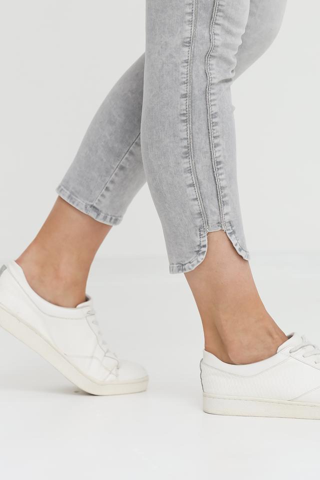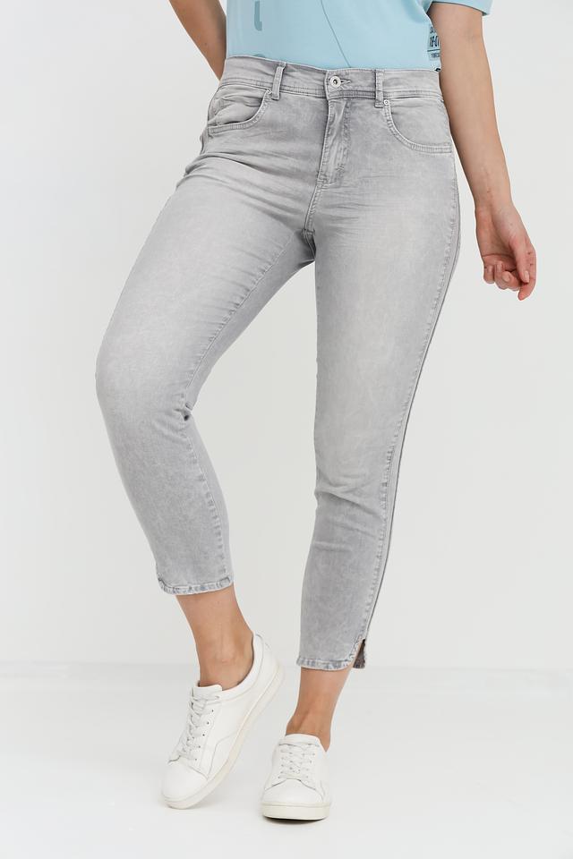 Серые джинсы Angels с эффектом потертостей — стильная и удобная модель для повседневной носки. Узкий крой и укороченная длина делают их актуальным элементом гардероба. Состав: хлопок 89%, полиэстер 8%, эластан 3%