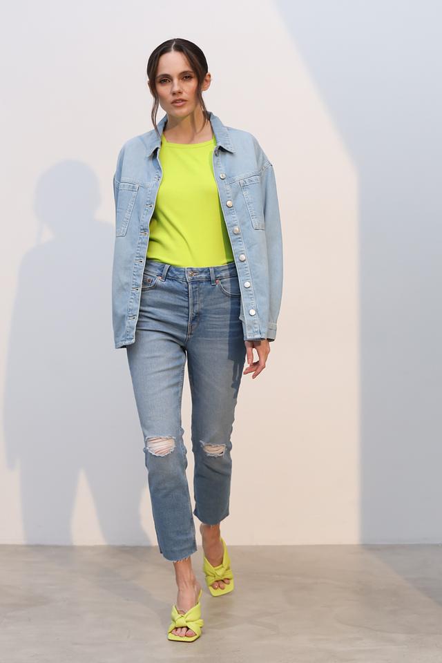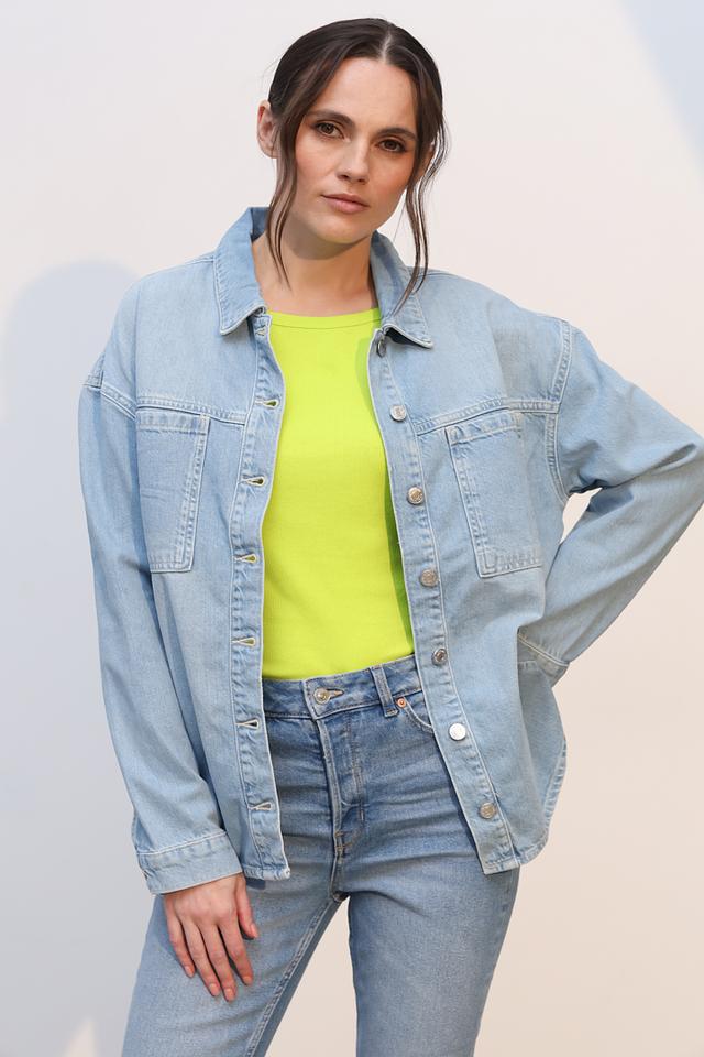 Этот джинсовый жакет от Angels станет отличным дополнением к вашему гардеробу. Он выполнен в светло-голубом цвете и имеет прямой, слегка свободный крой, который обеспечивает комфорт и свободу движений.