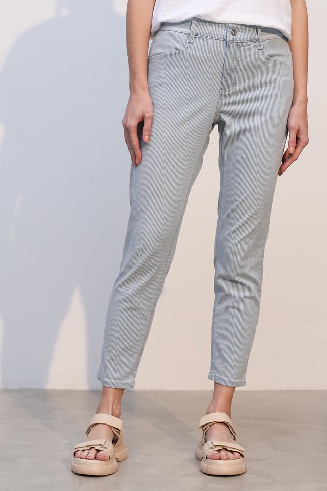 Женские брюки Angels голубого цвета в тонкую полоску – стильное и комфортное решение для повседневного гардероба. Модель выполнена из хлопка с добавлением полиэстера и эластана, что обеспечивает удобную посадку и практичность. Состав: хлопок 89%, полиэстер 8%, эластан 3%