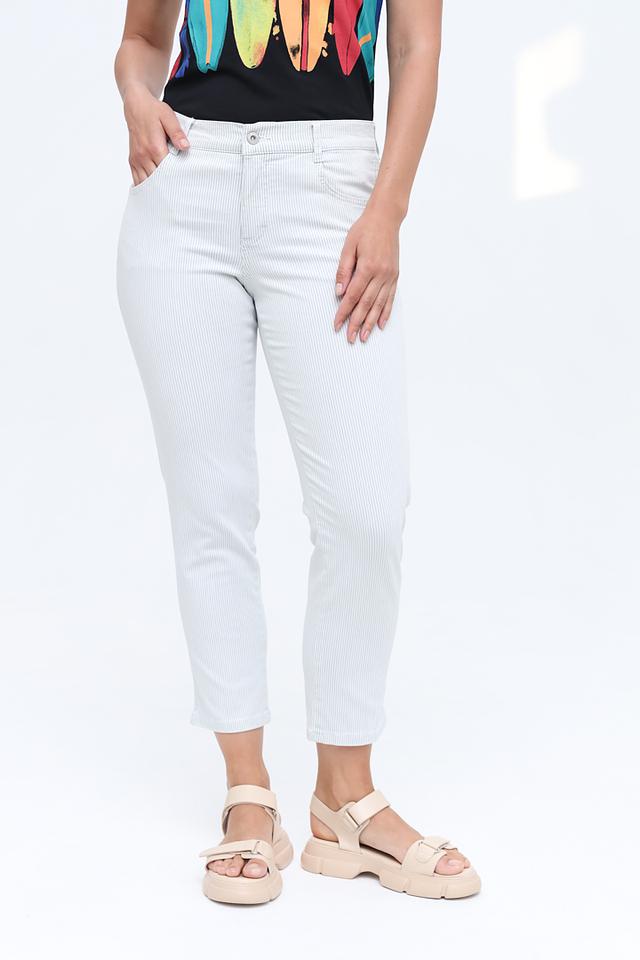 Представляем вашему вниманию джинсы от бренда Angels. Модель выполнена в светло-сером цвете с вертикальной полоской, что придает ей свежий и современный вид.