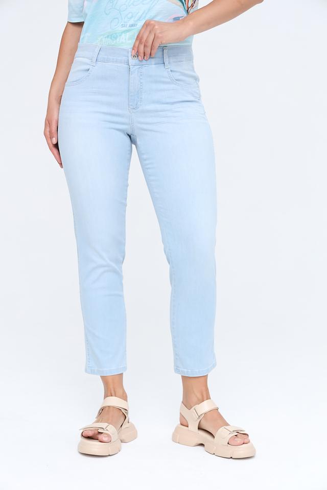 Женские джинсы Angels голубого цвета в стиле crop с зауженным к низу силуэтом. Модель выполнена из качественного хлопка с добавлением полиэстера и эластана для комфорта и износостойкости. Состав: хлопок 89%, полиэстер 8%, эластан 3%