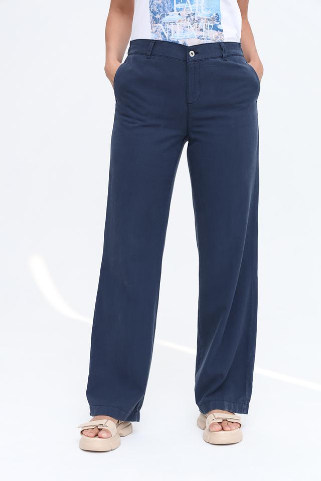 Синие брюки Angels прямого кроя — удобная и стильная модель на каждый день. Брюки выполнены из хлопка с добавлением лиоцела, что обеспечивает комфорт и приятные тактильные ощущения. Состав: хлопок 52%, лиоцел 48%