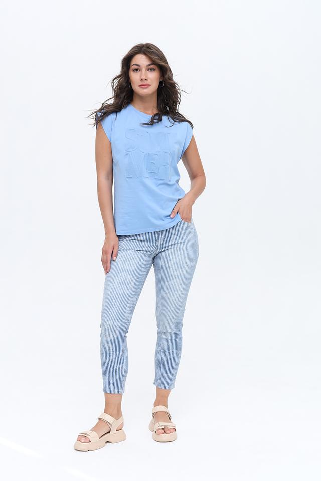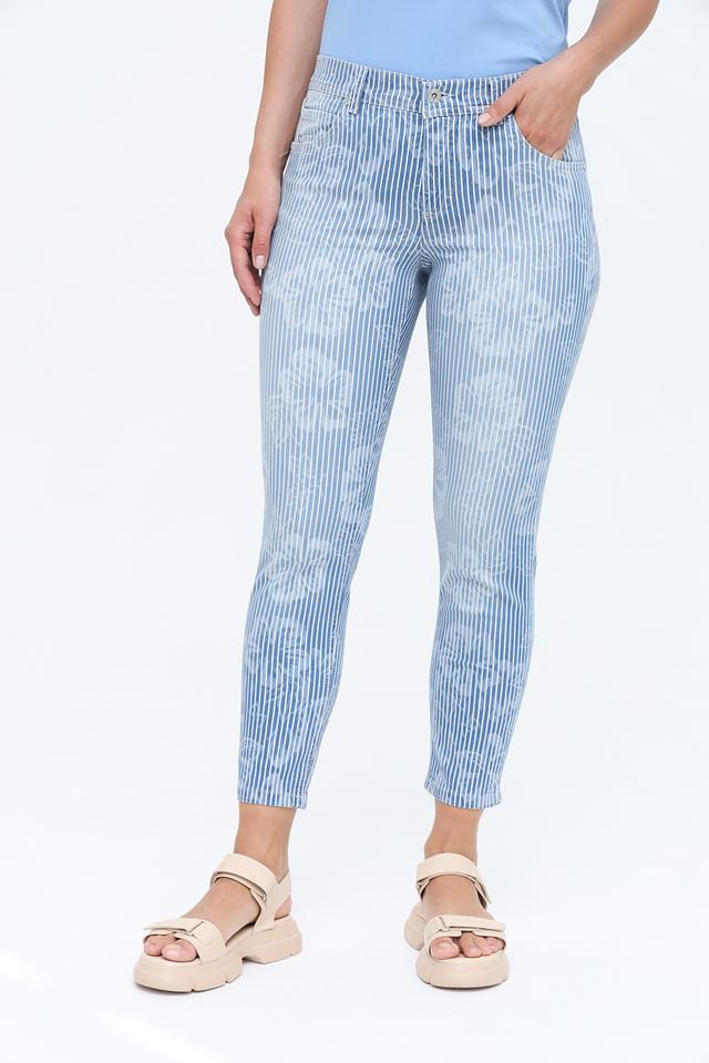 Женские джинсы Angels голубого цвета с оригинальным полосатым принтом. Модель выполнена из хлопка с добавлением полиэстера и эластана для комфорта и лучшей посадки. Состав: хлопок 89%, полиэстер 8%, эластан 3%