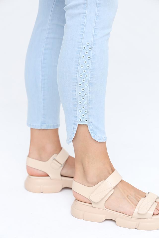Светло-голубые джинсы Angels скинни с декоративной перфорацией на штанинах. Модель выполнена из хлопка с добавлением полиэстера и эластана для комфорта и лучшей посадки. Состав: хлопок 89%, полиэстер 8%, эластан 3%