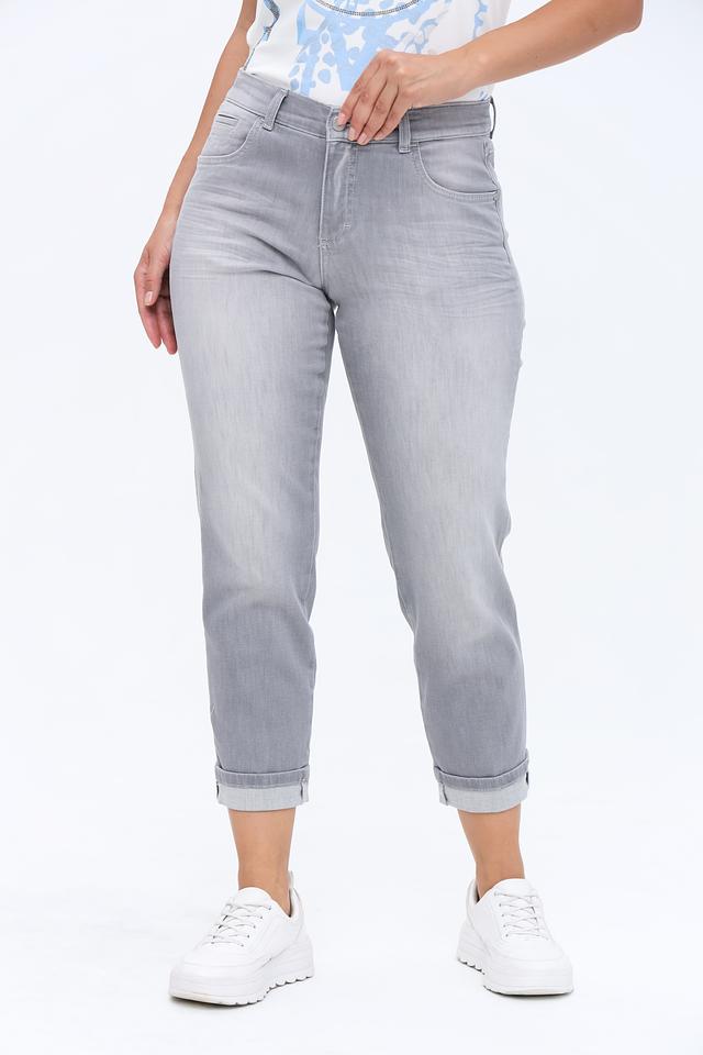 Серые укороченные джинсы Angels из хлопка с добавлением полиэстера и эластана — комфортный и стильный выбор для повседневной носки. Модель с зауженным к низу кроем и подворотами. Состав: хлопок 91%, полиэстер 6%, эластан 3%