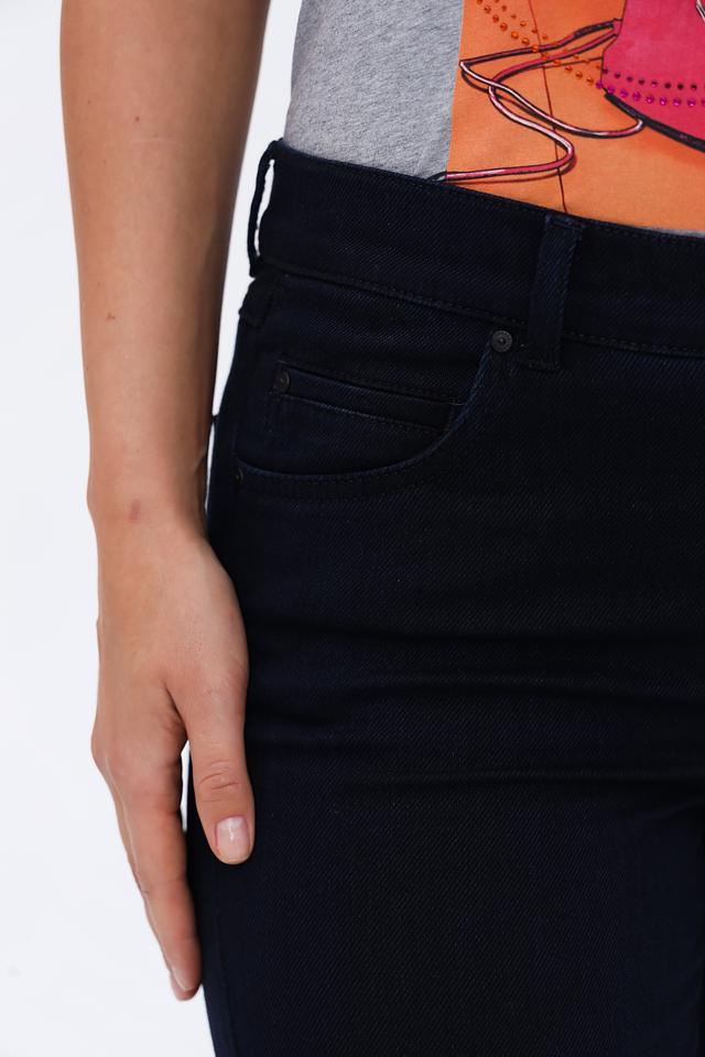 Джинсы имеют стандартную высоту талии и пять функциональных карманов – два спереди и три сзади. Застежка выполнена на молнии и пуговице. Ткань состоит из хлопка с добавлением полиэстера, вискозы и эластана, что обеспечивает удобство, износостойкость и небольшую эластичность.