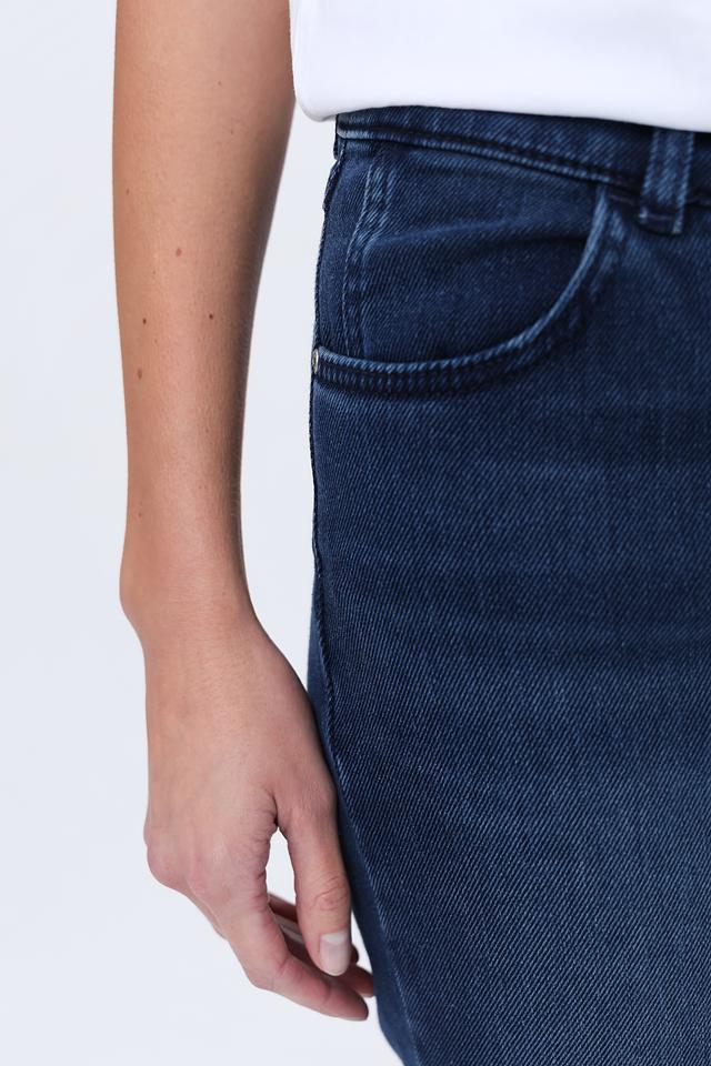 Джинсы имеют прямой крой, который обеспечивает комфортную посадку по фигуре и не сковывает движения. Высокая посадка подчеркивает талию и визуально удлиняет ноги. Ткань состоит из 77% хлопка, 10% полиэстера, 10% вискозы и 3% эластана, что обеспечивает мягкость, прочность и эластичность.