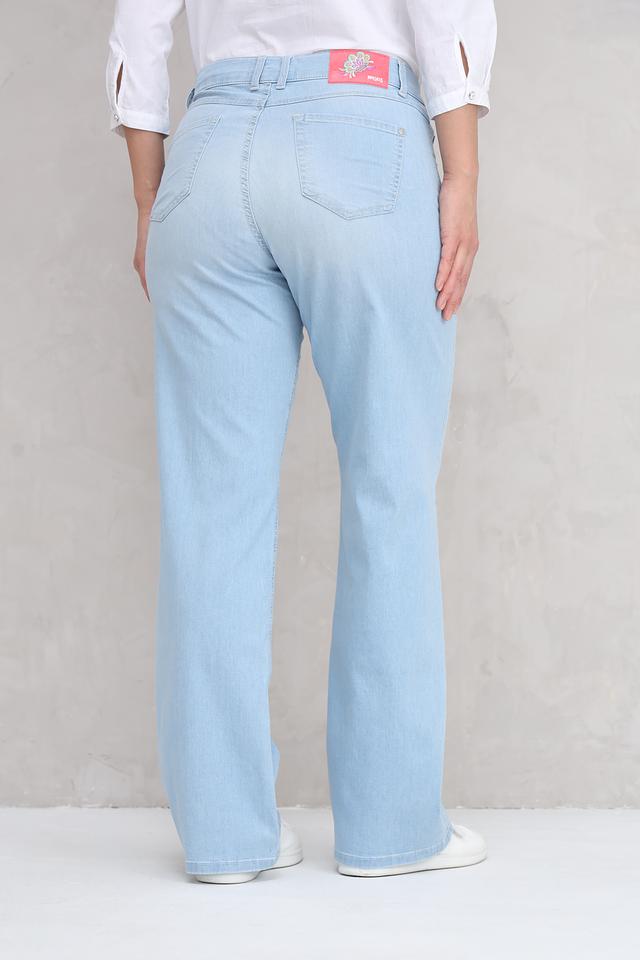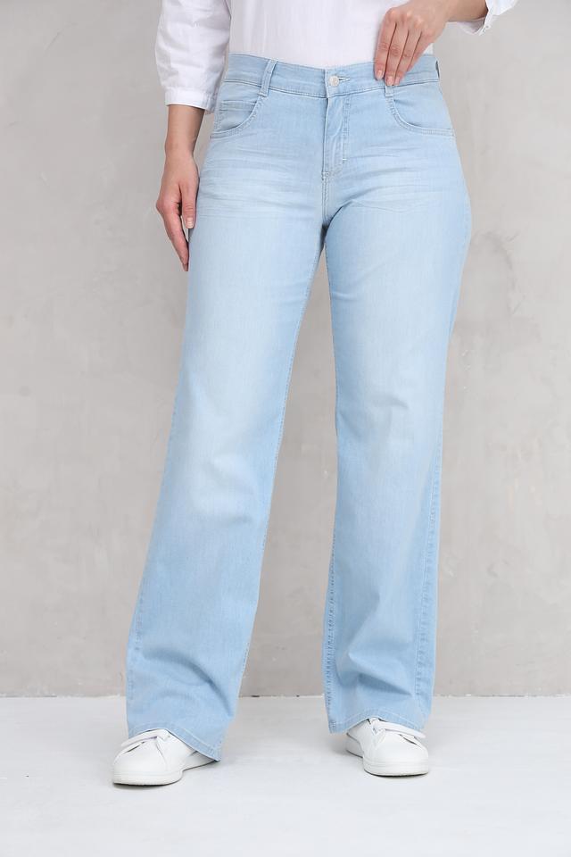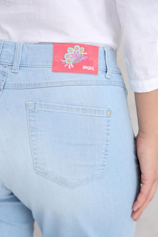 Эти джинсы Angels станут отличным дополнением к вашему гардеробу. Модель выполнена в светло-голубом цвете и имеет крой клеш, который визуально удлиняет ноги и создает женственный силуэт.