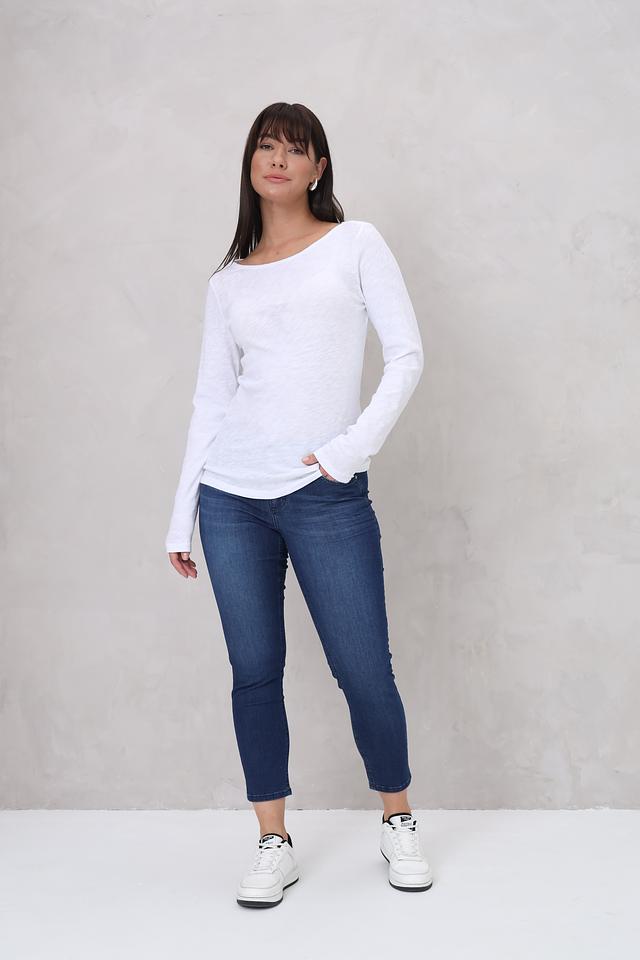Джинсы имеют скинни крой, который подчеркивает фигуру и обеспечивает комфортную посадку. Высокая посадка визуально удлиняет ноги и делает силуэт более стройным. Ткань содержит хлопок, полиэстер и эластан, что обеспечивает удобство в носке и сохранение формы.