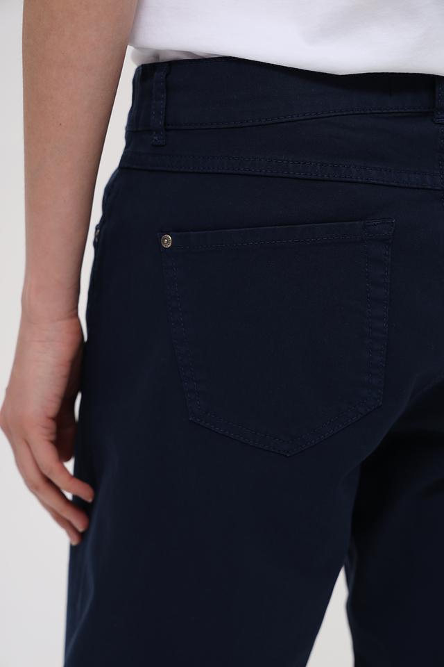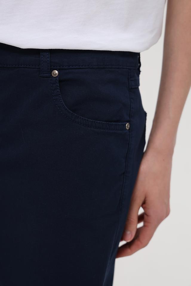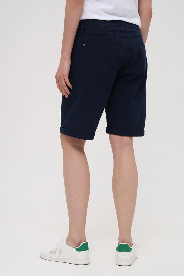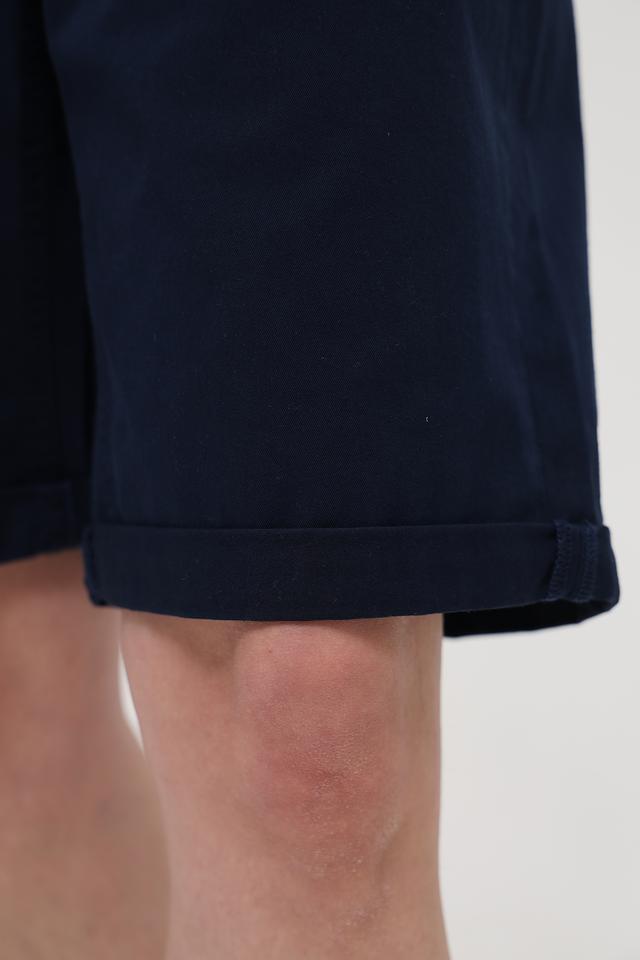 Классический синий цвет и прямой крой делают эти шорты универсальными и подходящими для различных стилей. Шорты застегиваются на молнию и пуговицу, имеют стандартную посадку по талии и удобные карманы.