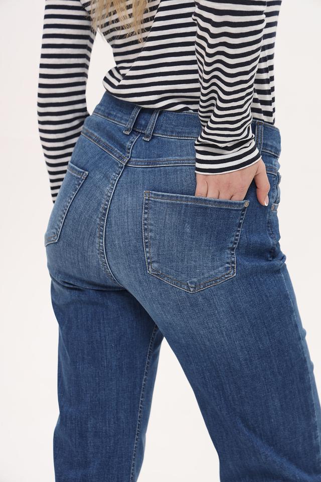 Джинсы имеют широкий крой, обеспечивающий свободу движений и комфорт в течение всего дня. Высокая посадка подчеркивает талию и создает элегантный силуэт. Ткань состоит из 89% хлопка, 8% полиэстера и 3% эластана, что гарантирует приятные тактильные ощущения, износостойкость и небольшую эластичность.