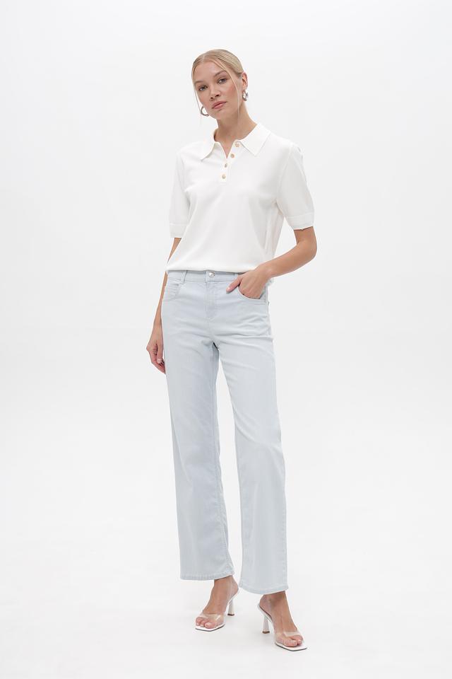 Женские брюки Angels голубого цвета в вертикальную полоску станут стильным дополнением к вашему гардеробу. Классический крой и средняя посадка обеспечивают комфортную посадку по фигуре.