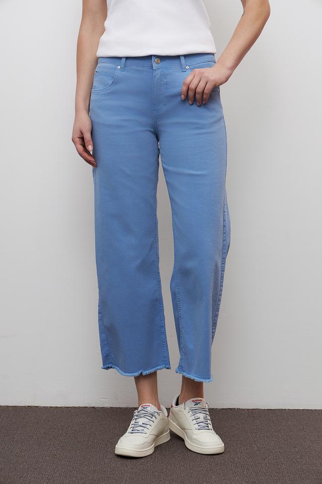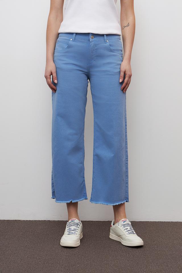 Женские брюки-кюлоты Angels голубого цвета, выполнены из хлопка с добавлением эластана. Удобная посадка и стильный силуэт. Состав: хлопок 98%, эластан 2%