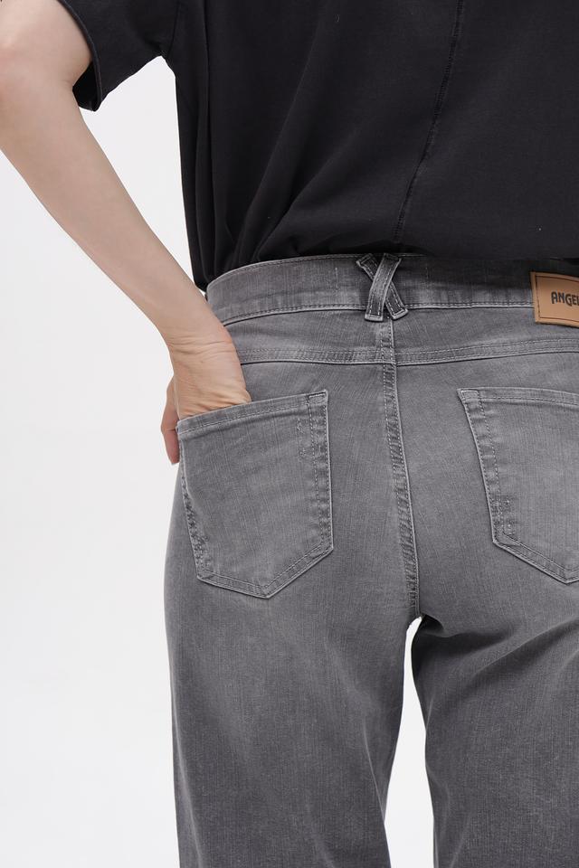 Серые джинсы Angels с эффектом потертостей и укороченным кроем. Изготовлены из хлопка с добавлением полиэстера и эластана для комфорта и износостойкости. Состав: хлопок 92%, полиэстер 6%, эластан 2%
