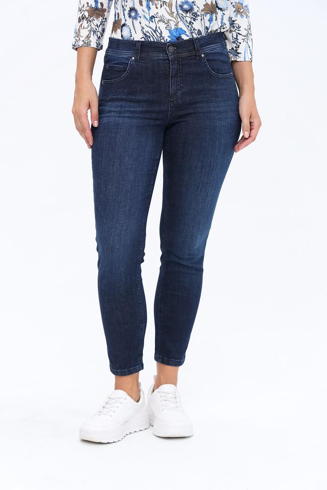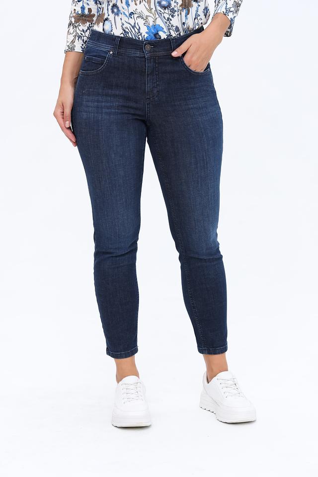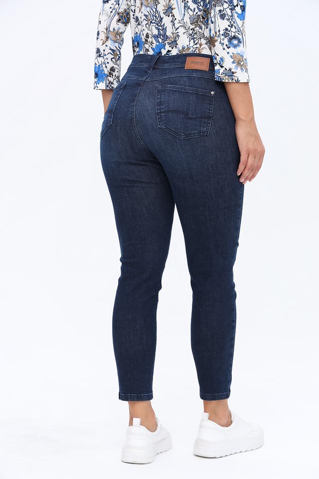 Женские джинсы Angels тёмно-синего цвета с высокой посадкой и зауженным к низу силуэтом. Модель выполнена из плотного хлопка с добавлением полиэстера и эластана для комфорта и сохранения формы. Состав: хлопок 92%, полиэстер 6%, эластан 2%
