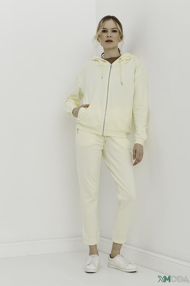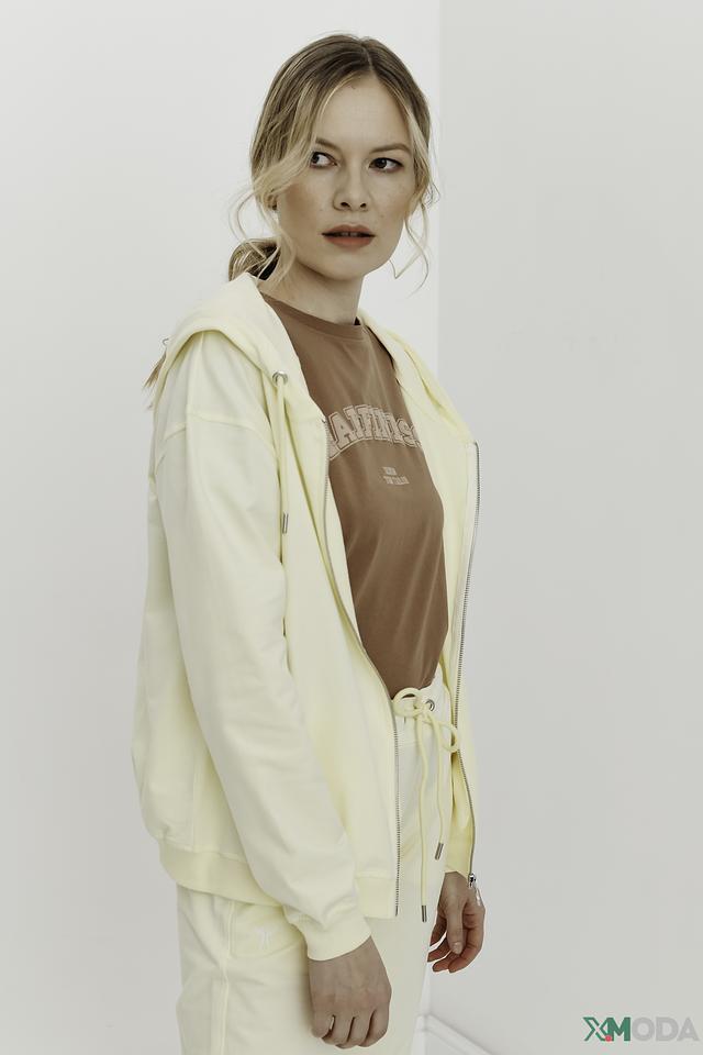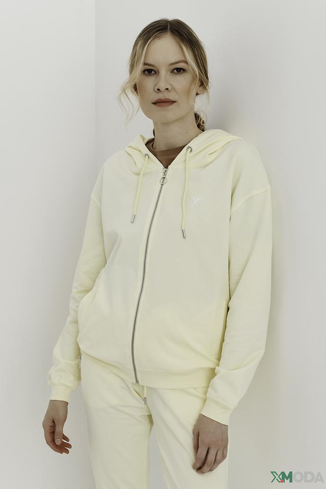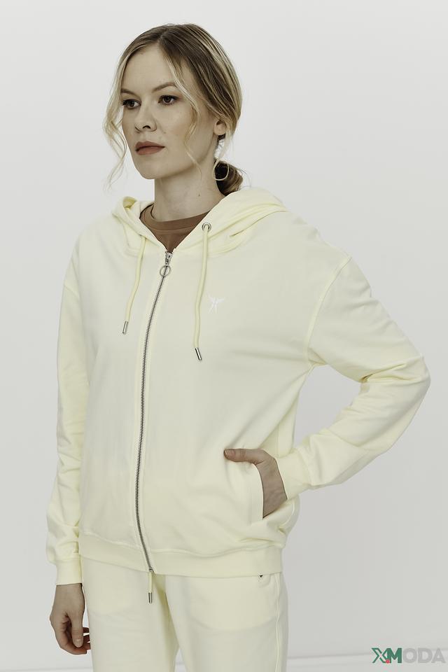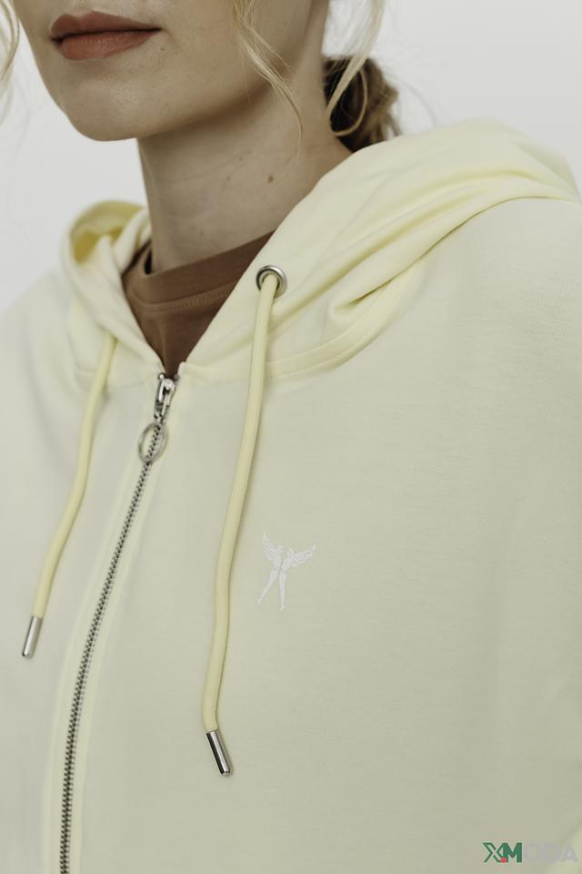 Жакет Angels цвета бледно-жёлтого – это стильная и удобная модель с капюшоном и застежкой-молнией. Изготовлен из мягкого хлопка с добавлением эластана для комфортной посадки и свободы движений. Идеальный выбор для создания повседневных образов. Состав: хлопок 95%, эластан 5%