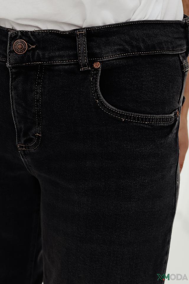 Джинсы выполнены в насыщенном чёрном цвете с эффектом лёгкого выцветания, что придаёт им современный и непринуждённый вид. Ткань состоит из 60% хлопка, 39% лиоцела и 1% эластана, благодаря чему джинсы приятны к телу, хорошо держат форму и обеспечивают комфорт в носке.
