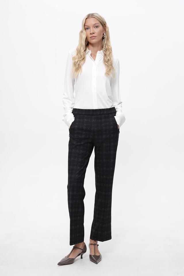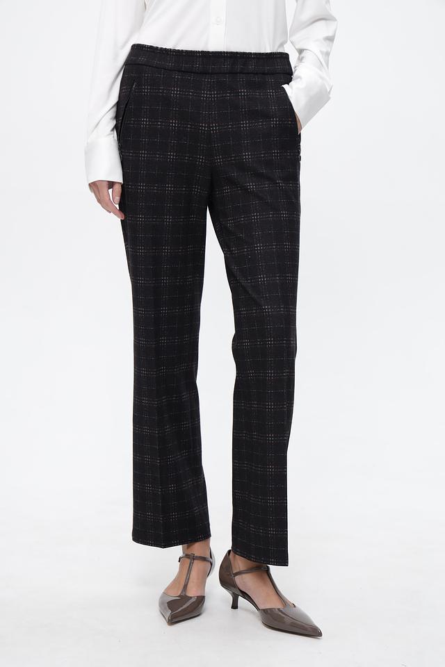 Стильные брюки Anna Montana серого цвета с актуальным клетчатым принтом. Изготовлены из комфортной ткани с добавлением вискозы и эластана, обеспечивающих удобную посадку и свободу движений. Состав: полиэстер 68%, вискоза 26%, эластан 6%