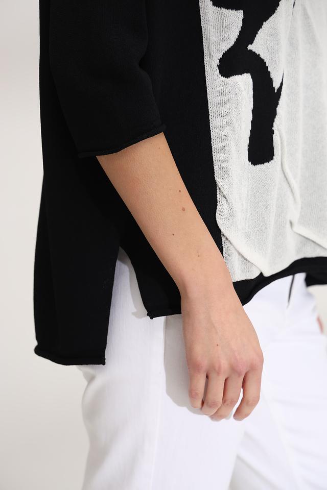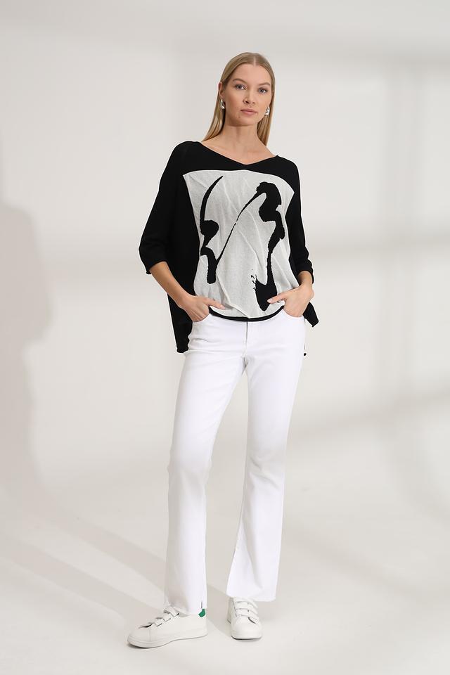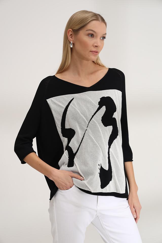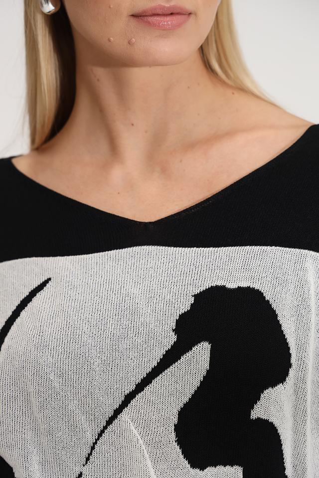 Этот стильный пуловер от Annette Gortz станет прекрасным дополнением к вашему гардеробу. Пуловер выполнен в чёрном цвете с эффектным абстрактным принтом на передней части, сочетающим в себе чёрные и белые оттенки.