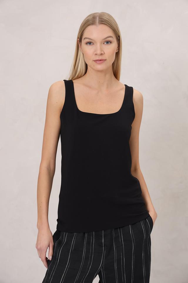 Этот чёрный топ от Annette Gortz – это воплощение минимализма и элегантности. Он выполнен из высококачественного хлопка с добавлением эластана, что обеспечивает комфорт и хорошую посадку по фигуре.