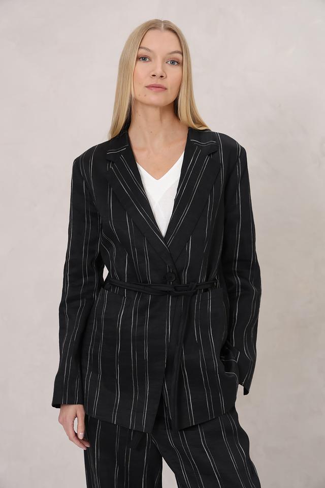 Жакет Annette Gortz чёрного цвета с белой полоской – стильное и современное решение для создания элегантного образа. Прямой крой и пояс в комплекте позволяют подчеркнуть талию и создать женственный силуэт. Состав: лен 89%, полиэстер 11%