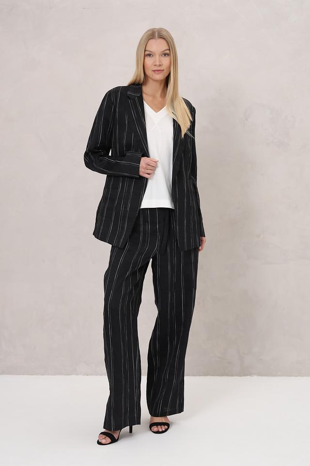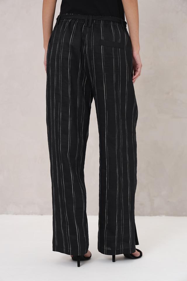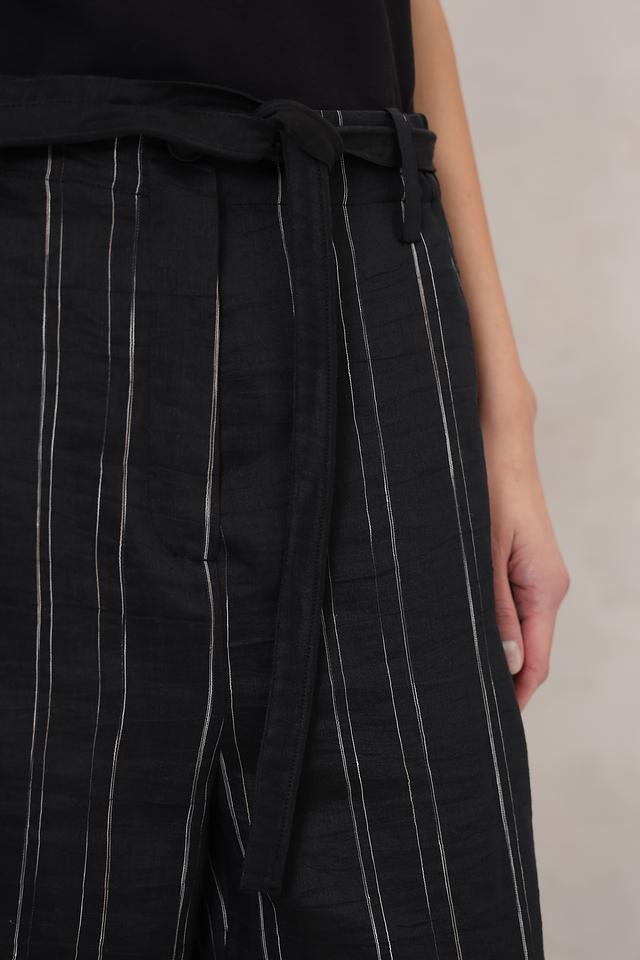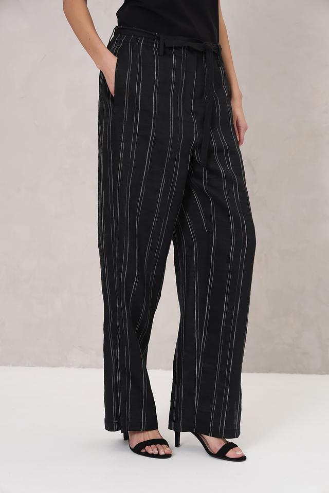 Женские брюки Annette Gortz чёрного цвета с вертикальной полоской – стильное и комфортное решение для создания повседневных образов. Модель выполнена из льна с добавлением полиэстера, что обеспечивает приятные тактильные ощущения и лёгкость в уходе. Состав: лен 89%, полиэстер 11%