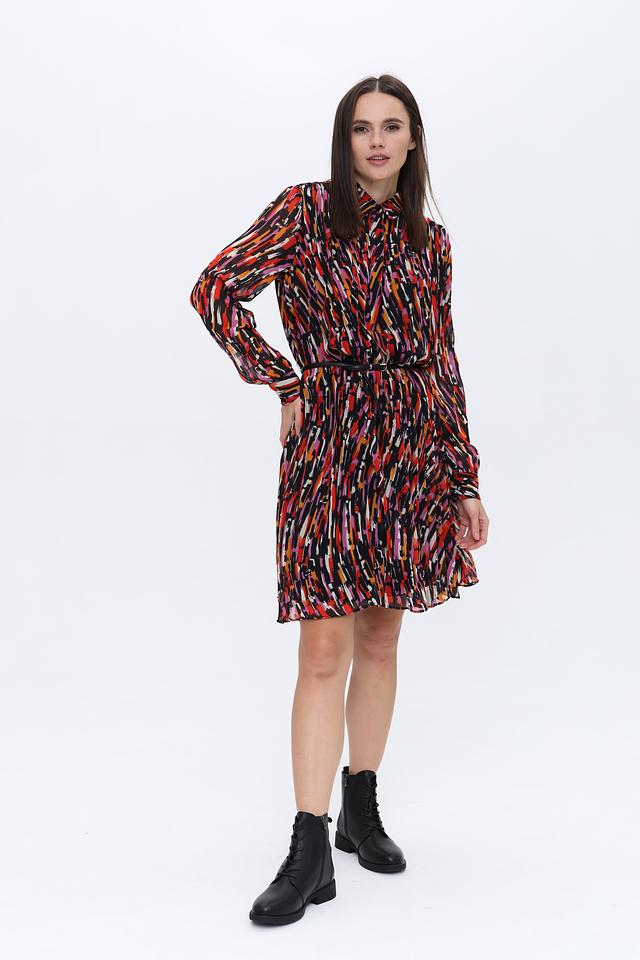 Платье Apart яркого цвета с абстрактным принтом и длинными рукавами. Модель выполнена из полиэстера и дополнена поясом, подчеркивающим талию. Идеальный выбор для создания стильного и запоминающегося образа. Состав: полиэстер 100%