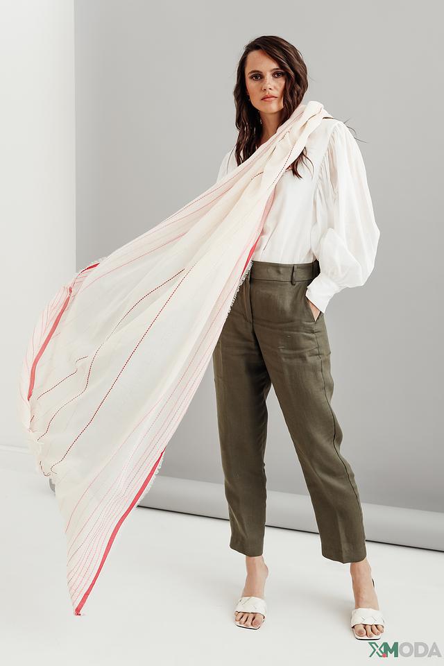 Нежная полоска и легкий материал делают этот шарф универсальным дополнением к любому гардеробу. Он прекрасно сочетается с повседневной и более формальной одеждой, добавляя образу легкости и изысканности. Состав: хлопок 88%, полиакрил 7%, модал 5%.