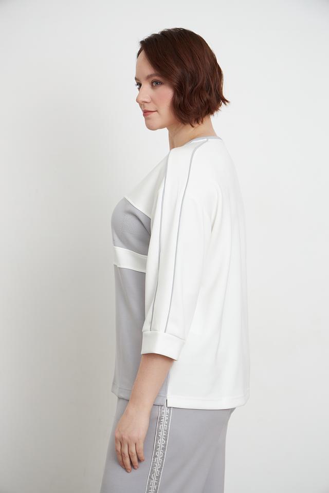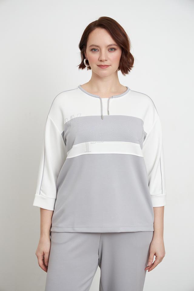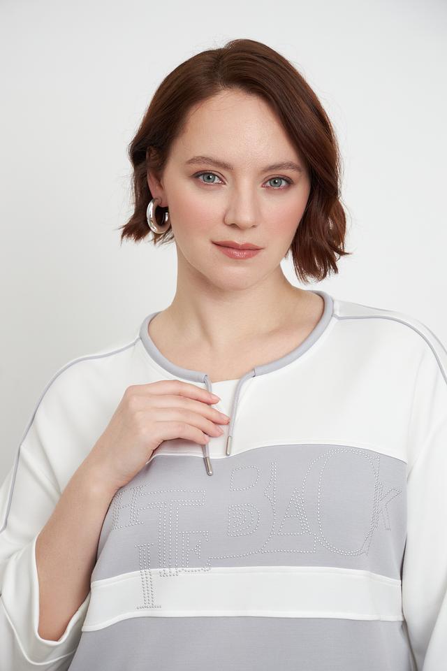 Этот стильный пуловер от Lebek станет отличным дополнением к вашему гардеробу. Он выполнен в сочетании серого и белого цветов, что придает ему современный и универсальный вид.