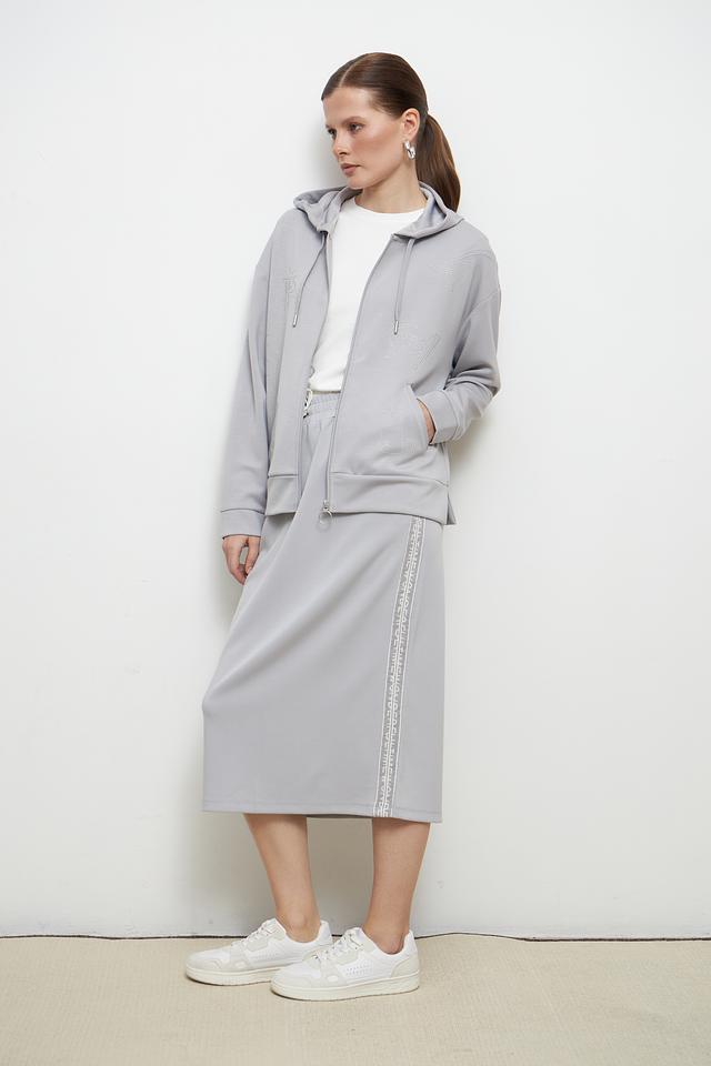 Стильная юбка Lebek миди серого цвета с боковой полоской – отличный выбор для создания комфортного и модного образа. Модель выполнена из приятной ткани с добавлением вискозы и эластана, обеспечивающих удобную посадку и свободу движений. Состав: полиэстер 50%, вискоза 45%, эластан 5%