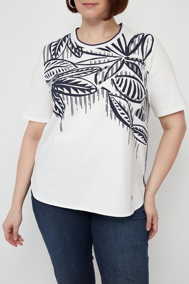 Белая блуза Lebek с оригинальным принтом в виде тропических листьев станет отличным дополнением к вашему гардеробу. Модель выполнена из мягкого хлопка с добавлением эластана, что обеспечивает комфорт и удобство в носке. Состав: хлопок 95%, эластан 5%